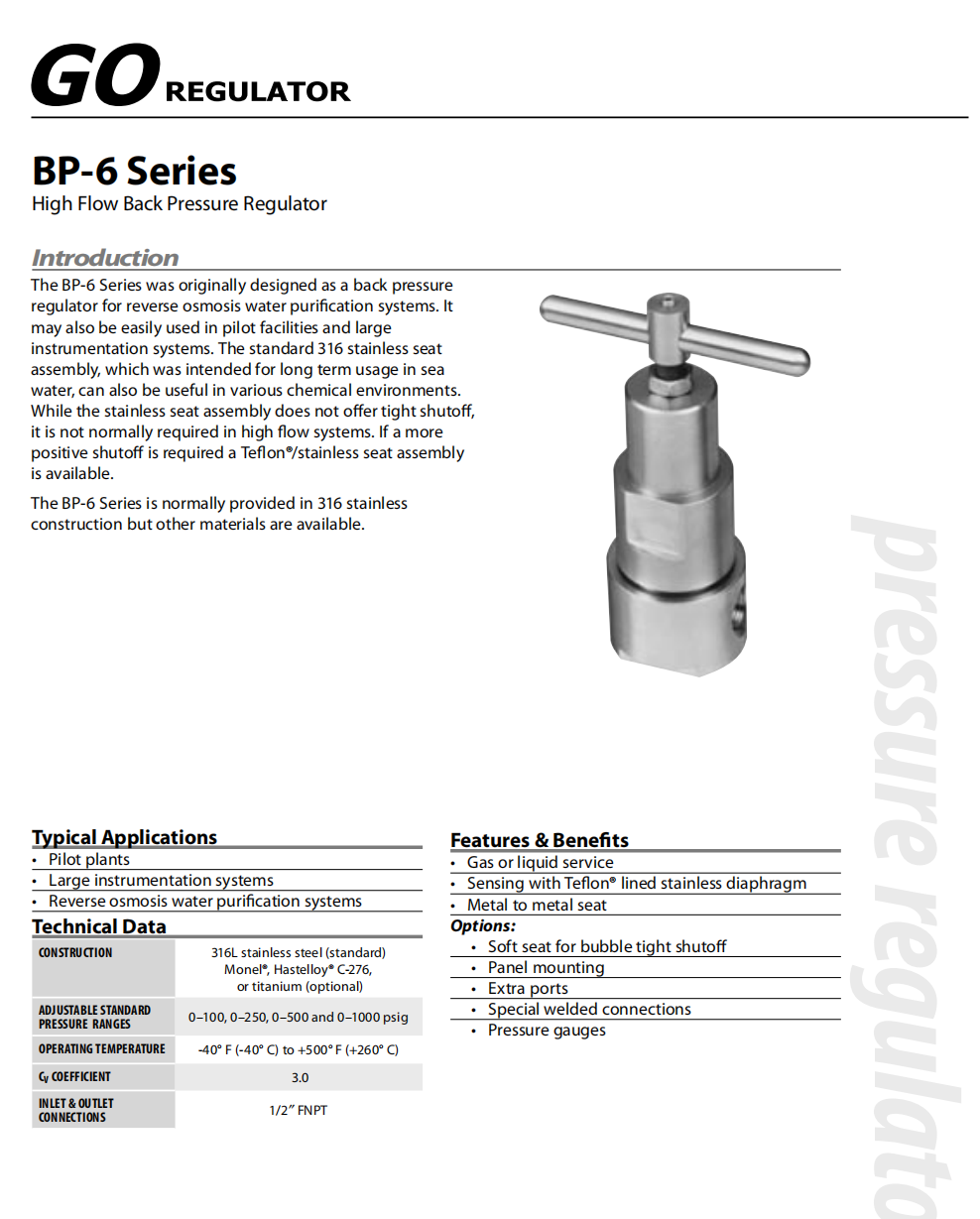 GO BP6中高壓背壓閥